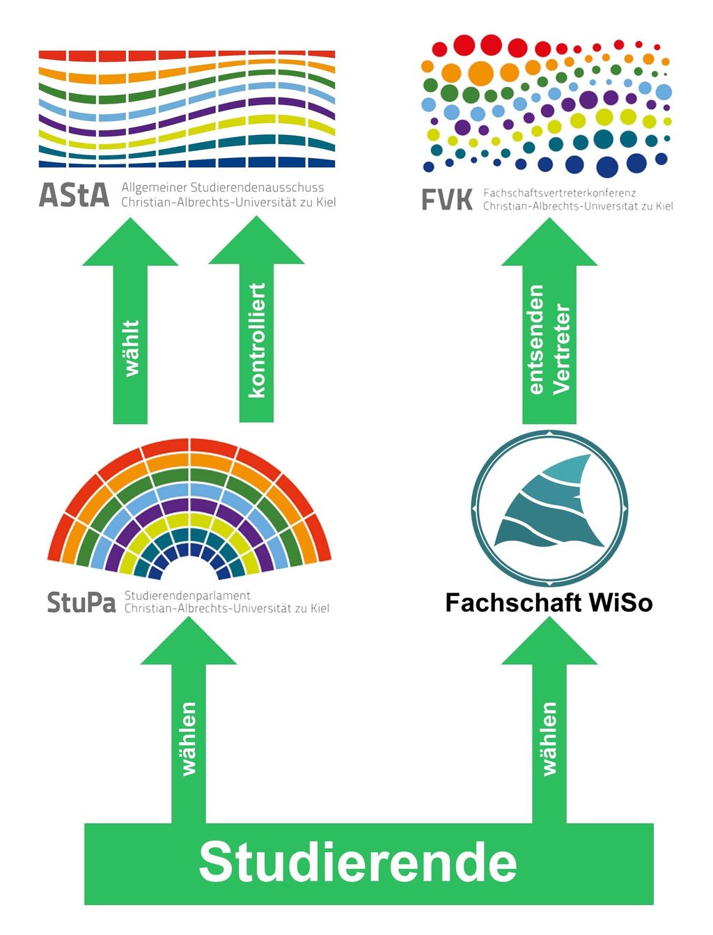 (Quellen: Hochschulgesetz Schleswig-Holstein Abschnitt 7 §72 , Organisationssatzung der Studierendenschaft der Christian-Albrechts-Universität zu Kiel §§ 1, 2, 3)